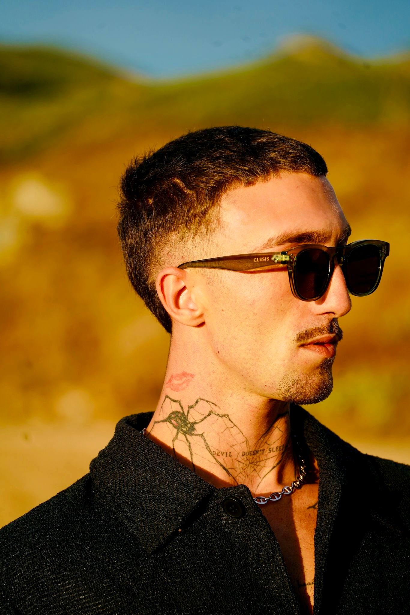 Mystérieux, un brin rebelle, Nérone surgit entre ombre et lumière. Ses lunettes kaki, ce sont ses pensées secrètes. Style inimitable.
